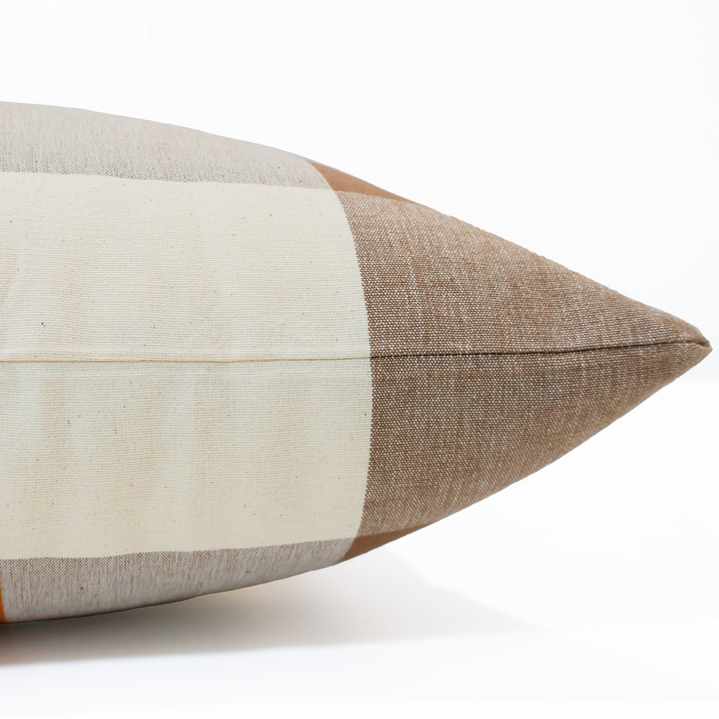 Bring a touch of warmth and rustic charm to your space with our Cider Plaid pillow cover. Featuring a classic oversized buffalo check pattern in a rich blend of terracotta, cream, taupe, and cocoa tones, this design evokes the cozy comforts of crisp fall days and fireside evenings.