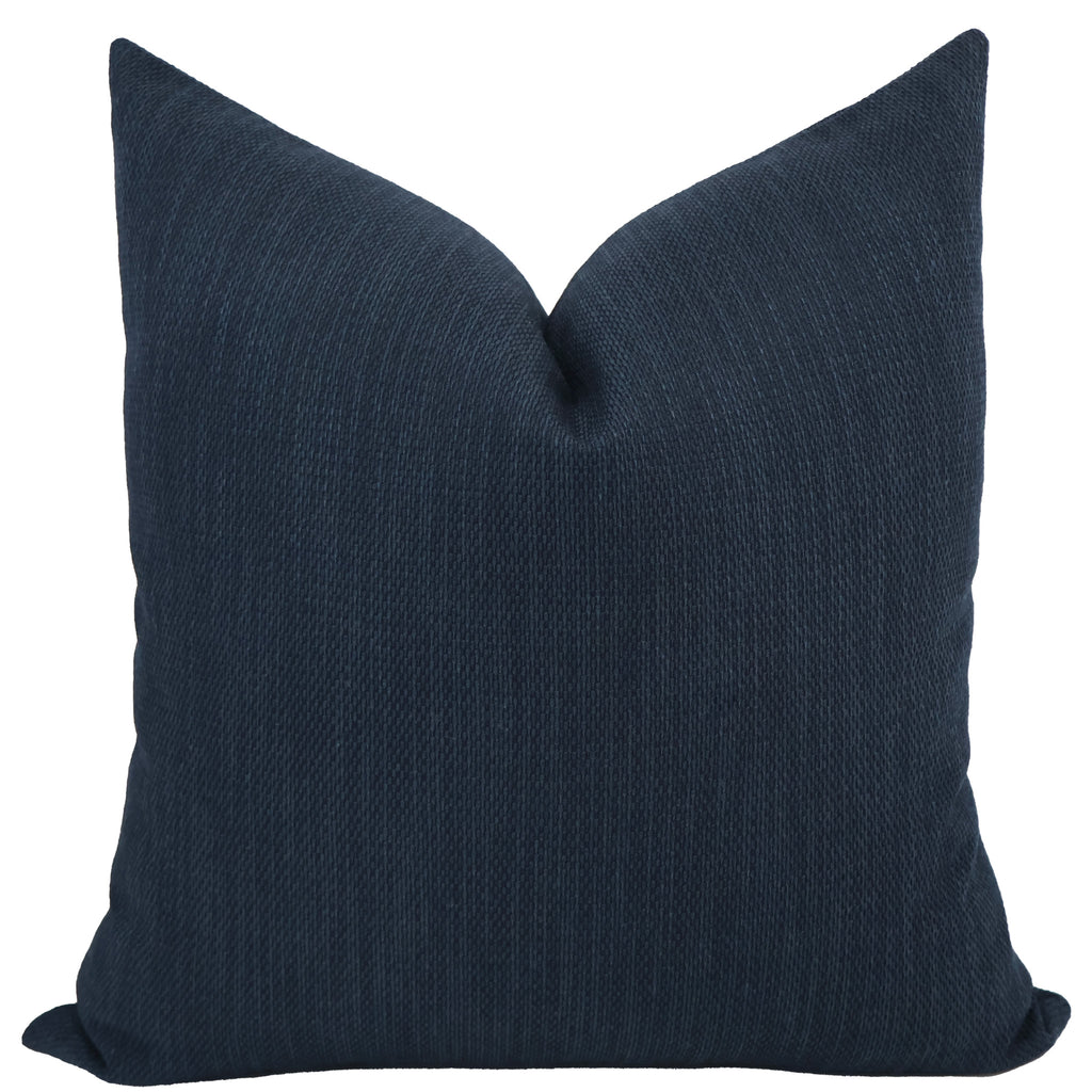 Inspired by the deep blues of the ocean as the sun slips below the horizon, the Coastal Nightfall Indoor/Outdoor Pillow Cover brings a calm, sophisticated presence to any space. Its rich navy tone evokes the quiet beauty of twilight along the coast—timeless, grounding, and effortlessly refined.
