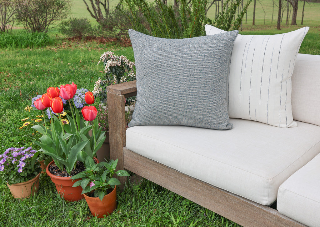 Elevate your outdoor space with our Loom Azure Indoor/Outdoor Pillow Cover, expertly crafted for style and durability. Featuring a timeless pattern in blue against a warm white-toned background, this high-end outdoor pillow offers a designer aesthetic with a contemporary edge. Made from premium performance fabric with a luxuriously soft hand, it's designed to withstand the elements while providing the feel of indoor comfort.