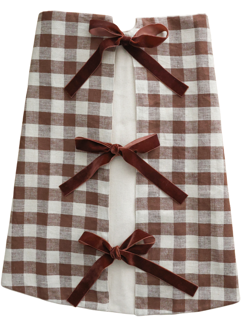 Warm Check Christmas Tree Skirt is handmade from block print 100% linen fabric. It provides a luxurious setting for the holiday tree and compliments your beautifully wrapped gifts. Made entirely by hand in the USA. Mix and match our Christmas Stocking with this tress skirt to complete the look. Original design by Hackner Home.