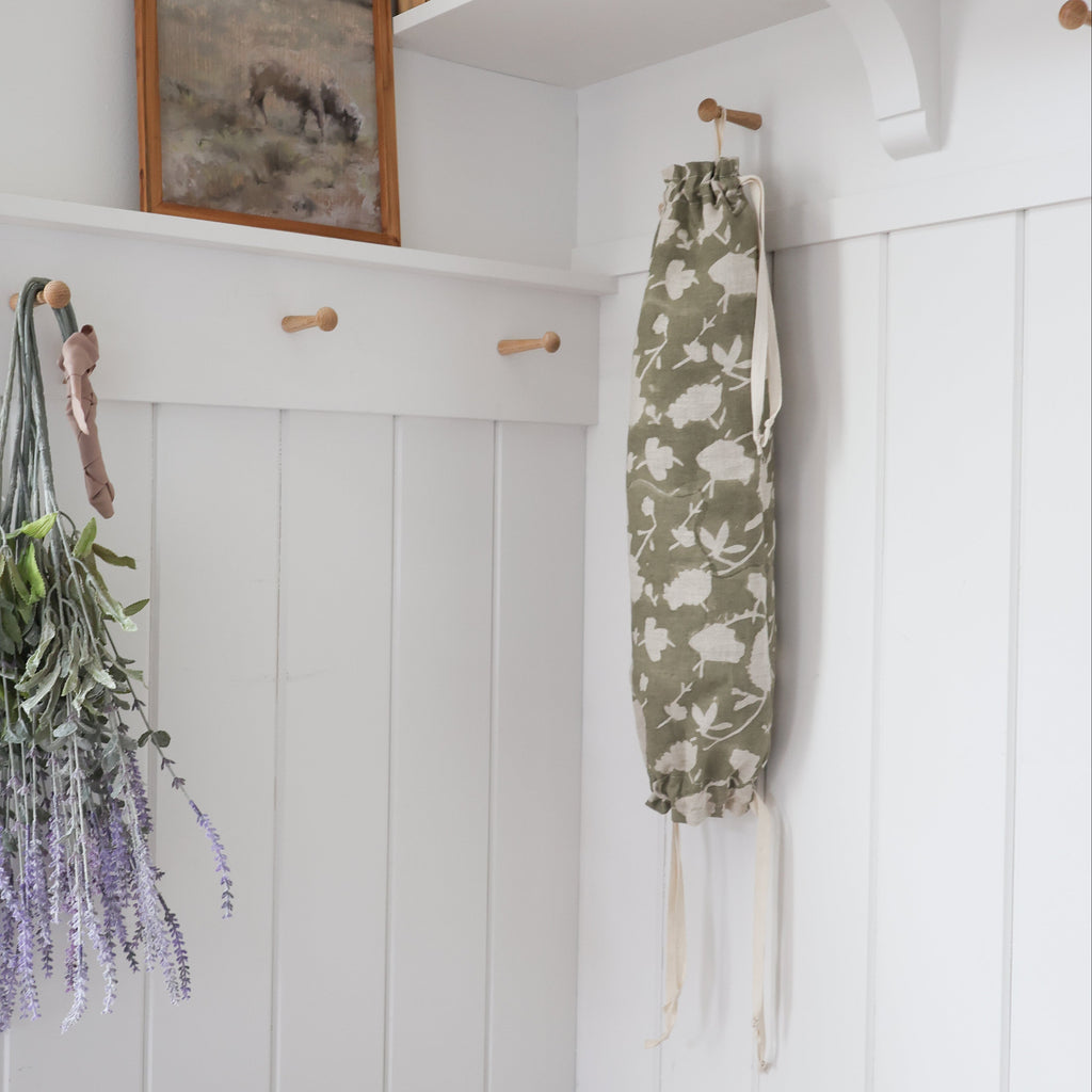 Cloth Grocery Bag Holder 'Sage Floral Block Print'