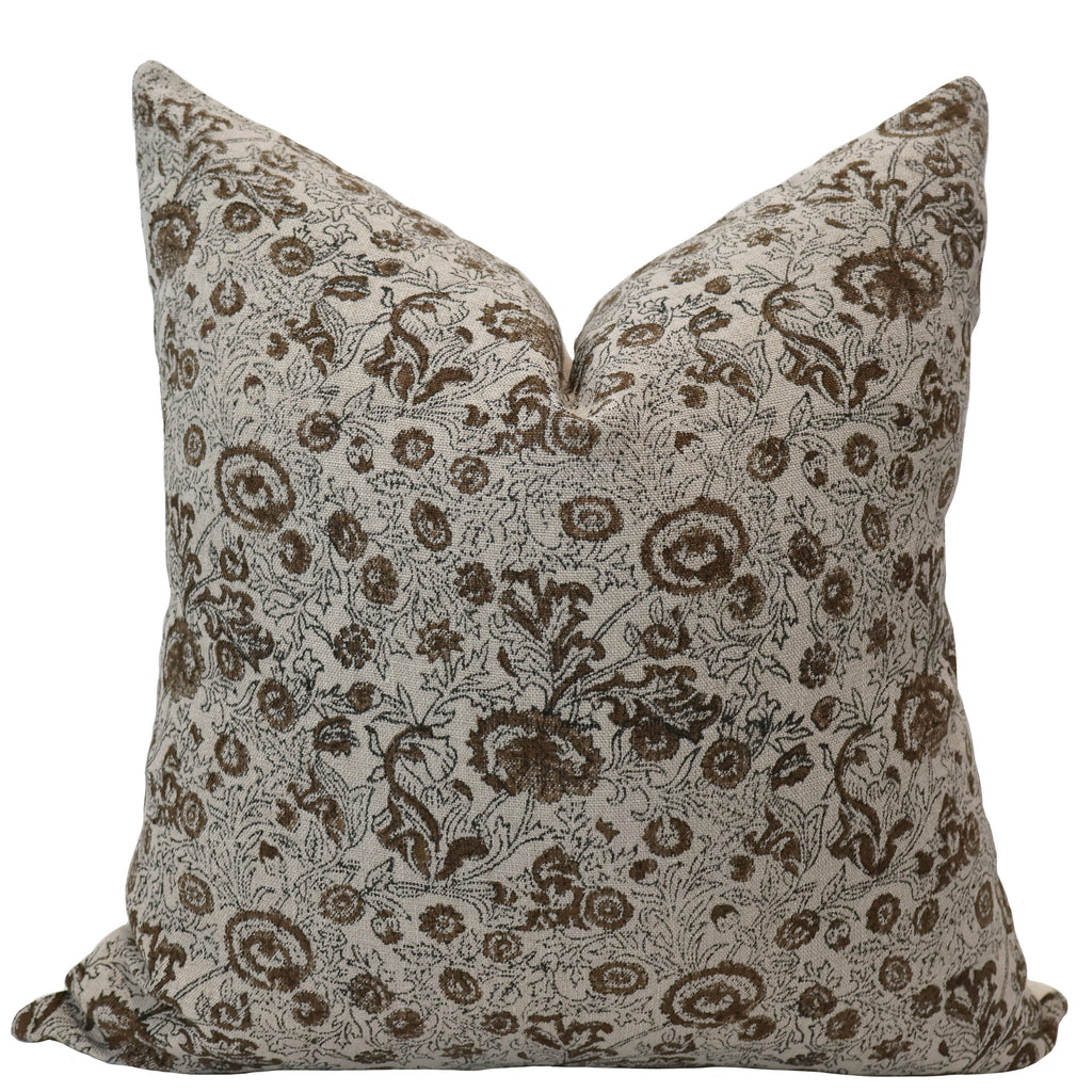 Chocolate Flower Block Print Pillow Cover
