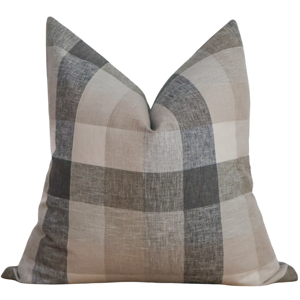 Elevate your interiors with the timeless sophistication of the Ironwood Plaid Pillow Cover by HACKNER HOME. Handcrafted in the USA with meticulous attention to detail, this designer pillow cover showcases a refined plaid pattern in layered shades of gray and neutral taupe—creating a versatile yet striking accent for any room.