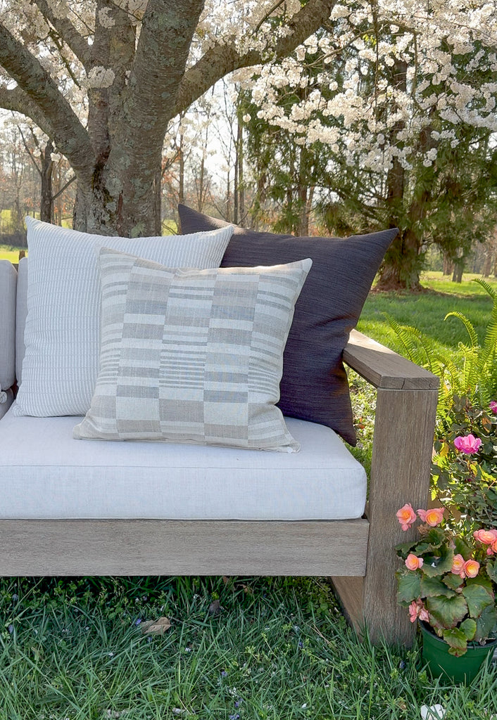 Add a modern touch to your outdoor space with the Offset Indoor Outdoor Pillow Cover. It is made of durable outdoor fabric that will withstand the elements in your outdoor living space. Its woven design offers a smooth texture and added comfort to your space.
