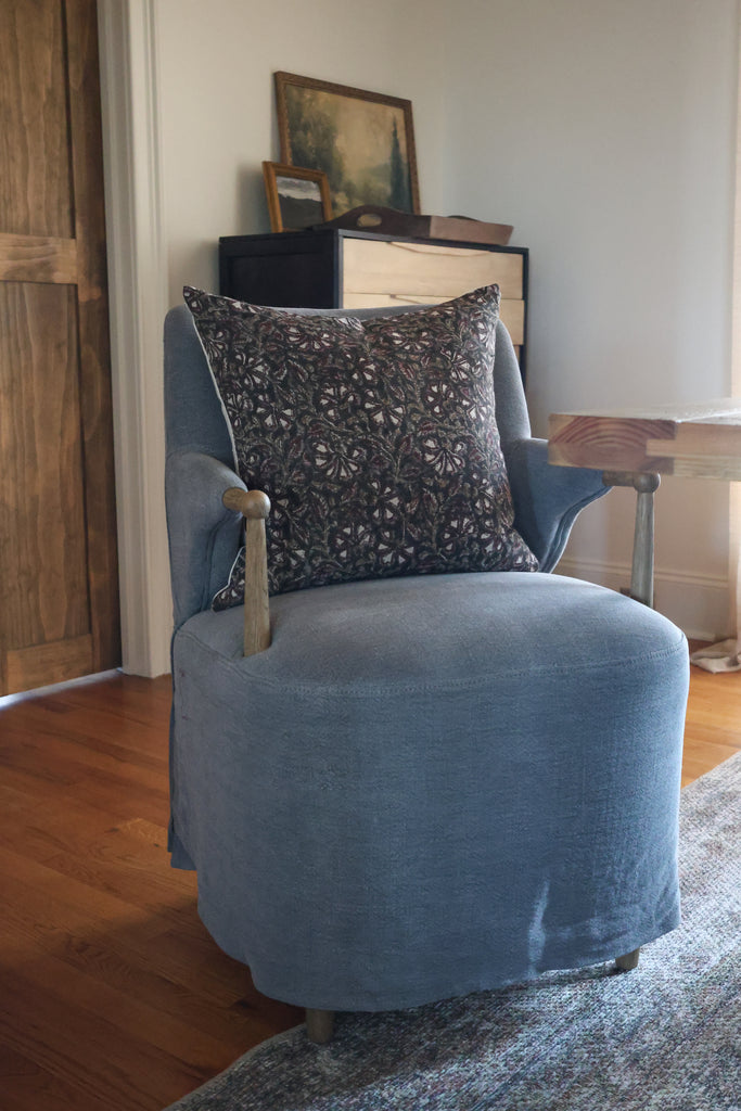 The Shadow & Bloom Pillow Cover is an ode to artistry and timeless elegance. Crafted from 100% pure linen, this designer pillow cover features a hand block printed pattern, each impression telling the story of heritage craft and meticulous detail. The interplay of soft blooms against grounding shadows creates a dramatic yet romantic effect—perfect for those who curate their homes with intention and style.