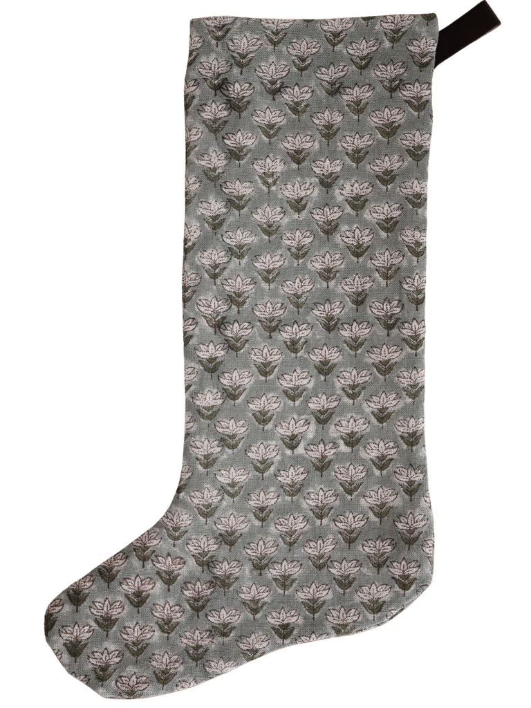 Elevate your holiday traditions with the understated beauty of our Muted Blue Floral Block Print Christmas Stocking in| Large Minimal Design, handmade by HACKNER HOME. Designed in our Minimal style, this stocking embodies quiet luxury with clean lines, simple form, and a naturally refined aesthetic.