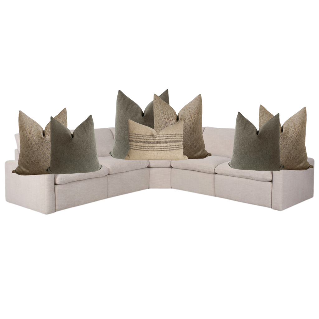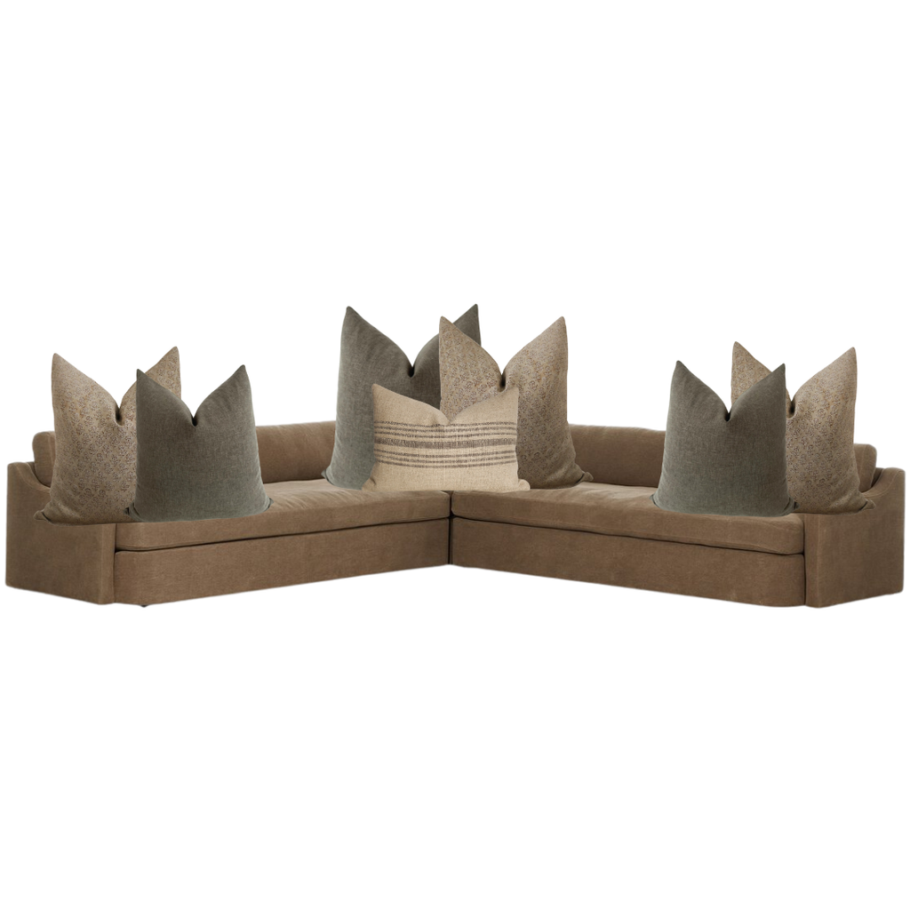 Meet the Sectional Pillow Combo ‘Organic’—a carefully selected set of decorative pillow covers designed to bring a sense of tranquility to your sectional sofa. Featuring muted, calming color tones, this pillow cover combo creates a serene and harmonious ambiance in any living room. Crafted from premium-quality linen fabrics, each pillow cover is both stylish and durable, offering comfort and elegance. Perfect for adding a touch of nature-inspired design to your home, this pillow combo effortlessly enhances your sectional sofa with a sophisticated yet relaxed look.