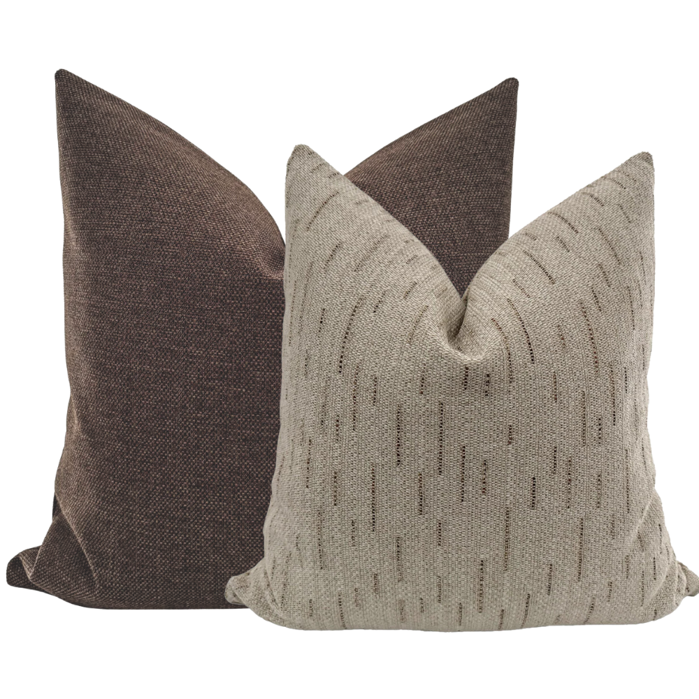 The Hot Cocoa Designer Pillow Cover Set brings warmth and charm to your living space, embodying the cozy essence of its name. Featuring a palette of rich, warm brown hues, these covers evoke the soothing tones of a steaming cup of cocoa on a winter evening. Each piece is crafted from premium performance fabric, ensuring a soft, inviting texture that is as durable as it is beautiful, making them perfect for both elegant styling and everyday use.