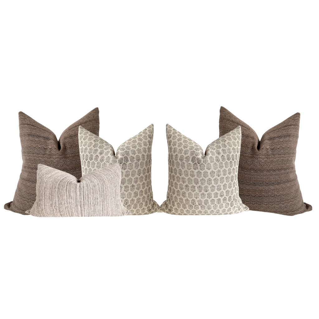 Introducing the Sofa Pillow Combo 'Birdie' by HACKNER HOME—a curated ensemble that embodies organic modern luxury with a touch of artisanal charm. This handcrafted collection features a harmonious blend of linen, fine cotton, and polyester fabrics, offering both texture and comfort. The standout piece is a hand-printed 100% linen block print pillow, showcasing intricate floral patterns achieved through traditional block printing techniques, adding a unique, artistic flair to the set. Designed for those who appreciate understated elegance and superior craftsmanship, this pillow combo enhances any living space with its neutral tones and refined aesthetic. Elevate your home decor with the timeless appeal.