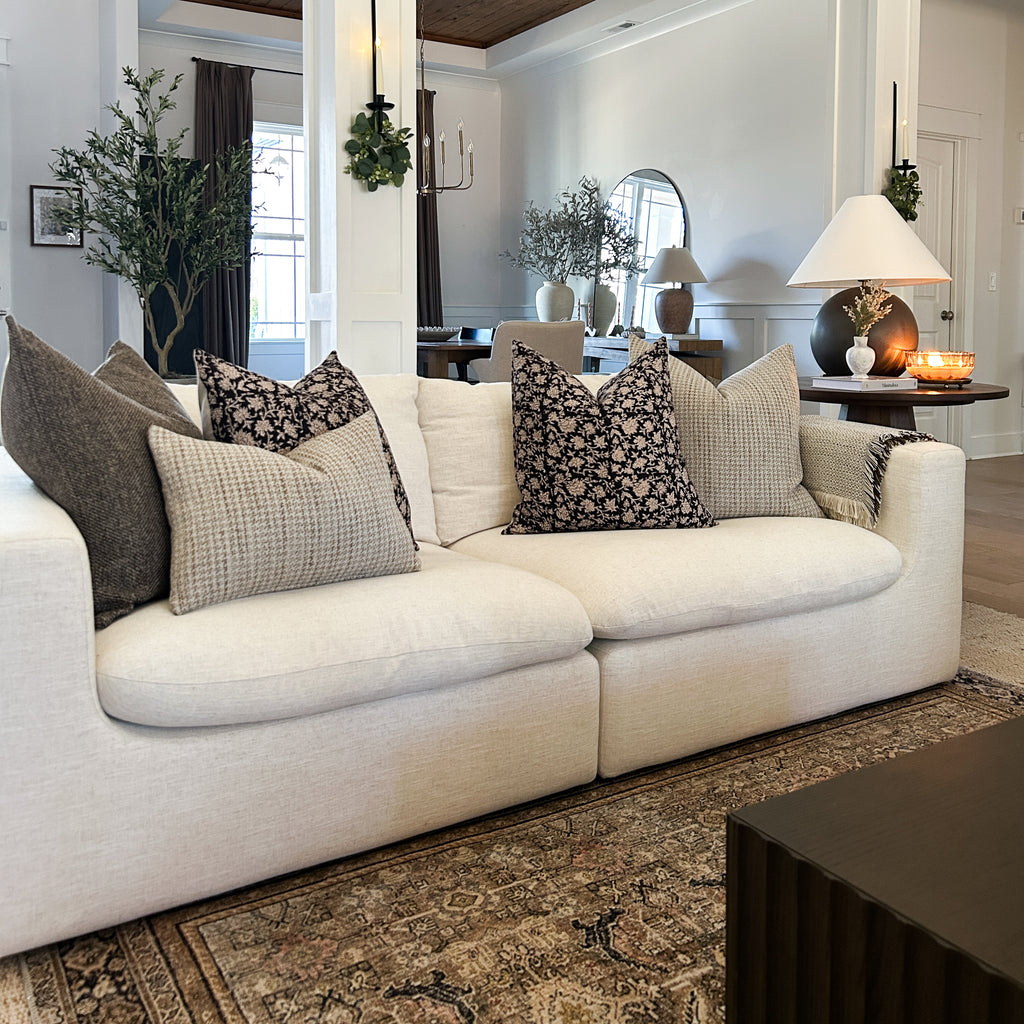 (1) 20x20 Black Floral Block Print | Flax Linen Back