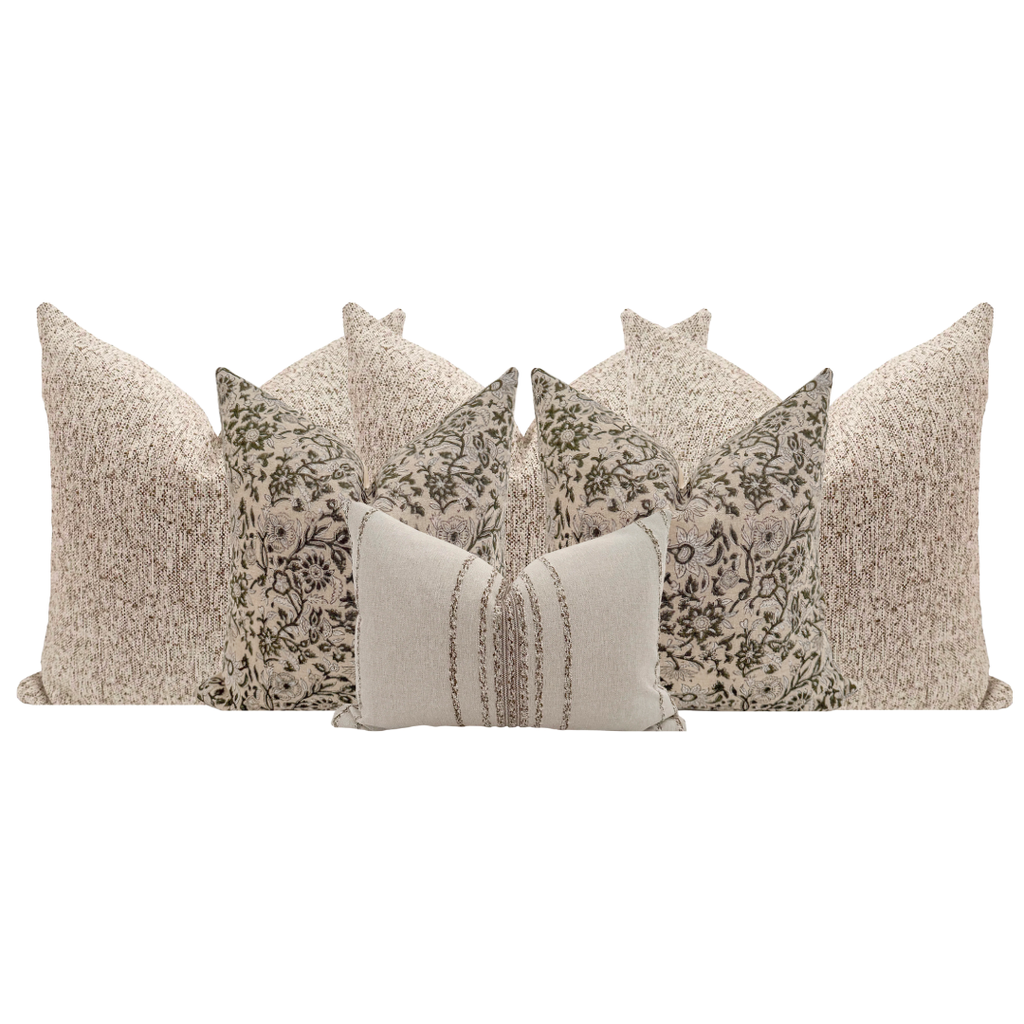 (2) 22x22 Yule Green Floral | Flax Linen Back