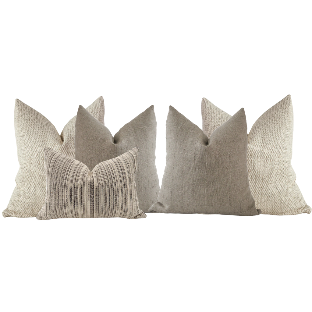 The Stillness Sofa Pillow Set by HACKNER HOME embodies calm sophistication and effortless elegance. Thoughtfully curated in soft, neutral tones, this designer pillow collection invites a sense of serenity and refined comfort into your home.